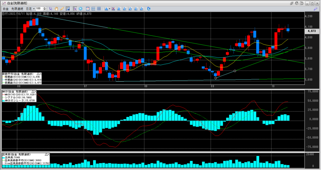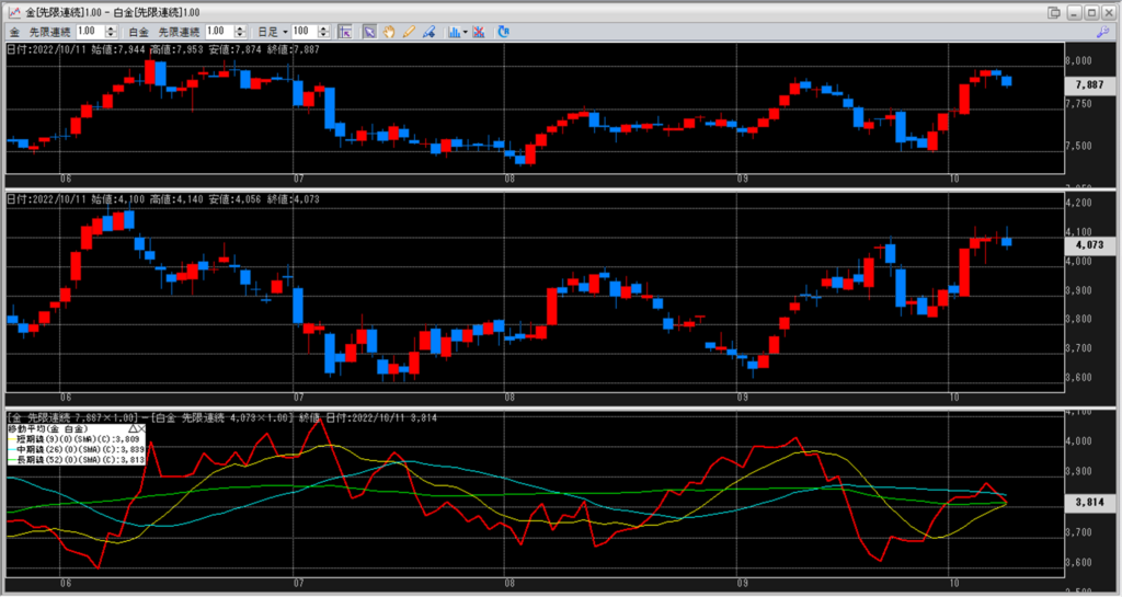 下記に金白金鞘の移動平均線のチャートを貼り付けています。