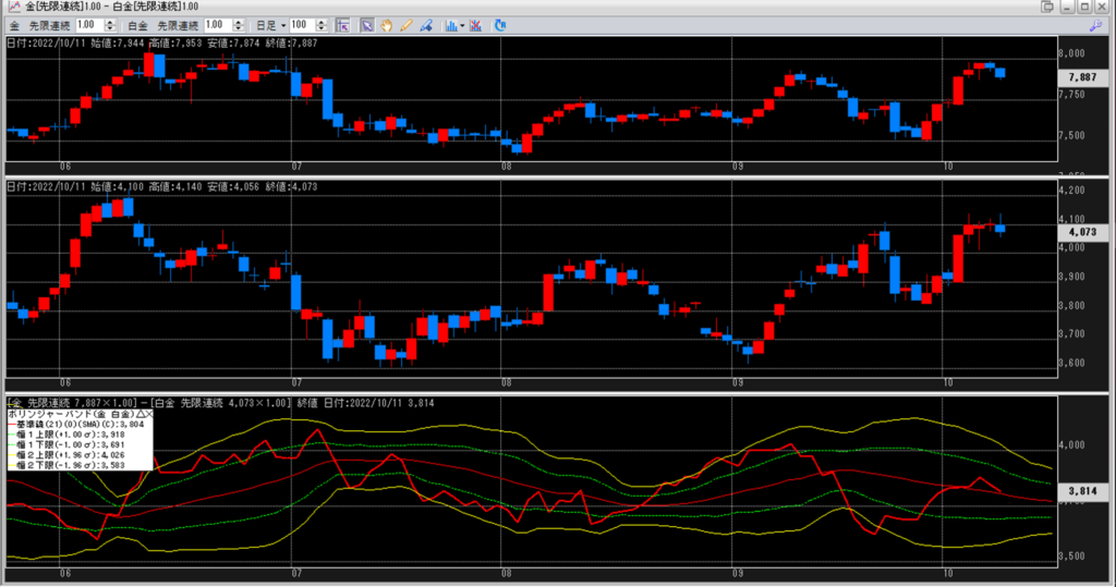 金白金の鞘をボリンジャーバンドで見ていきます。