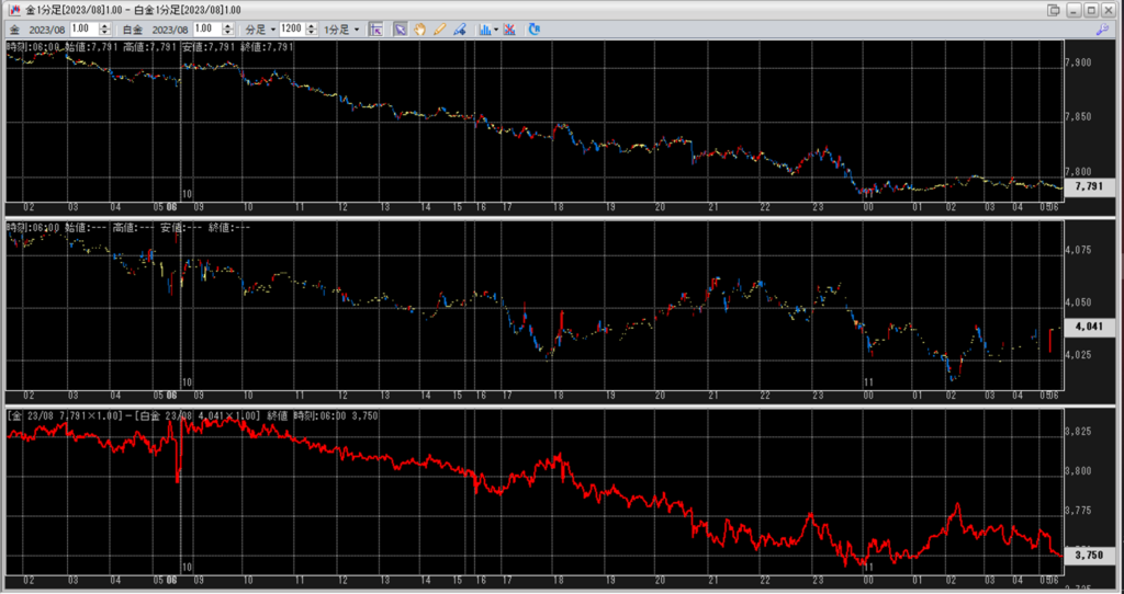 中:大阪取引所 白金 2023年8月限 1分足