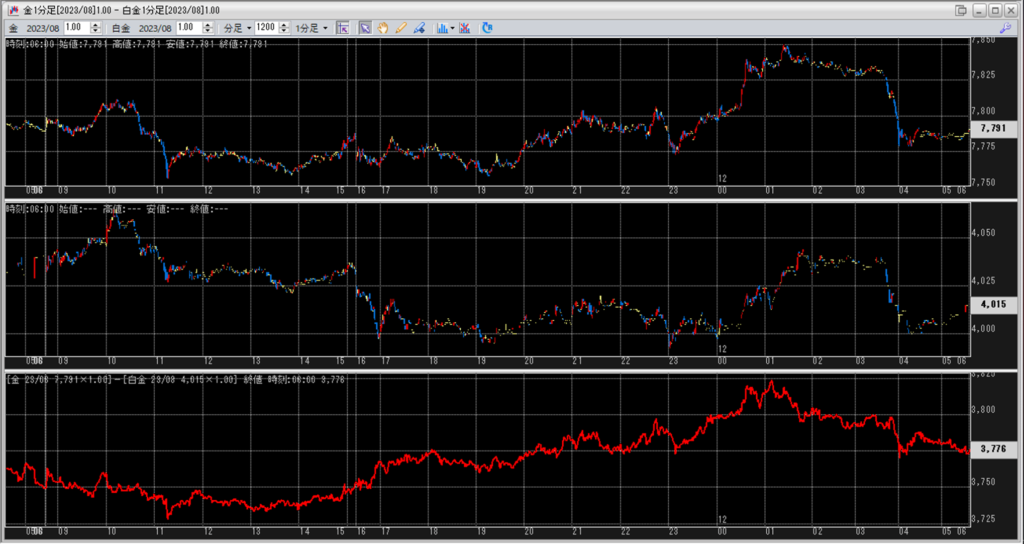 中:大阪取引所 白金 2023年8月限 1分足
