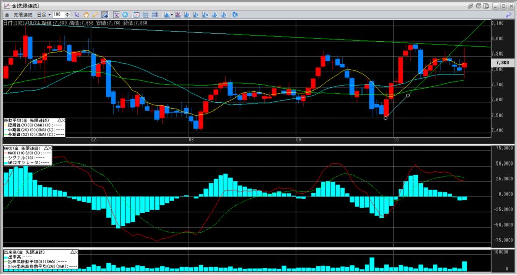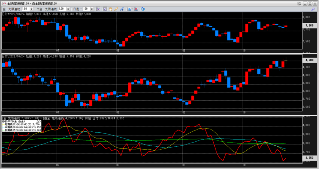 下記に金白金鞘の移動平均線のチャートを貼り付けています。