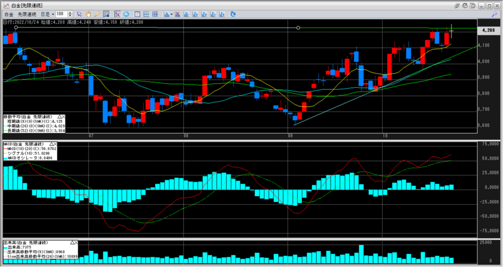 移動平均線の中で一番上に位置している短期線4,125円を超えて、