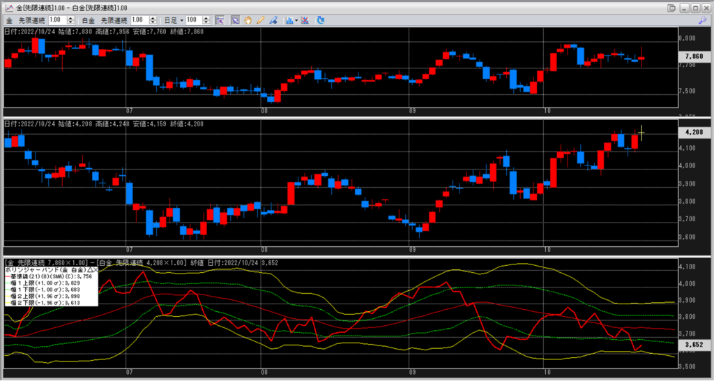 金白金の鞘をボリンジャーバンドで見ていきます。