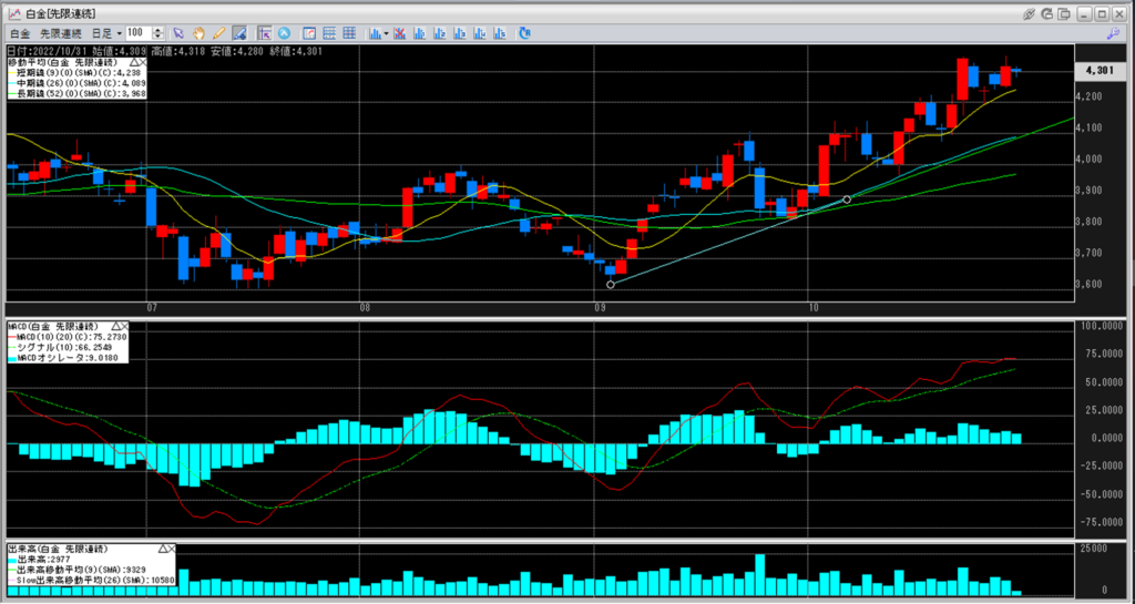 白金のチャートを見ると、引き続き、強そうな状態が続いています。