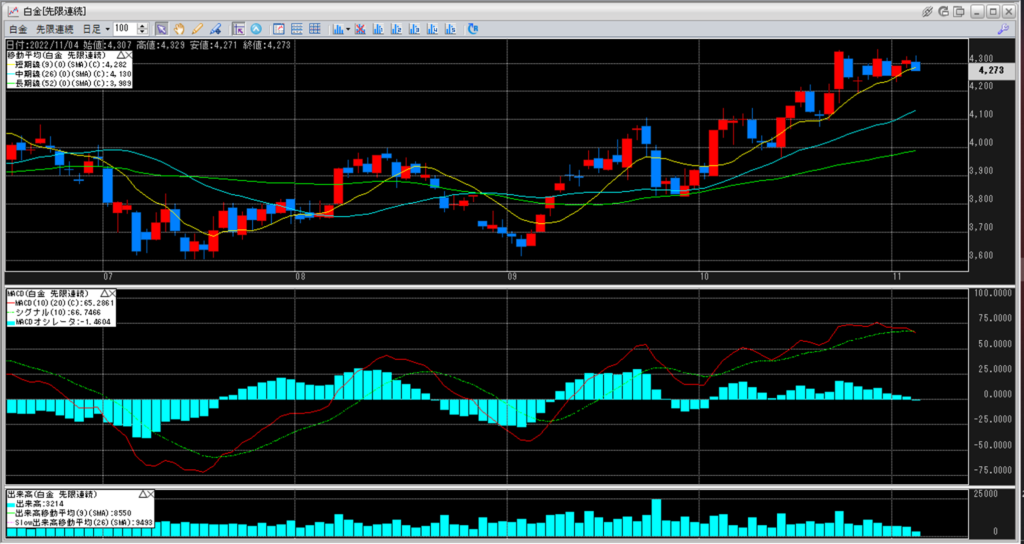 白金のチャートを見ると、引き続き、強そうな状態が続いています。