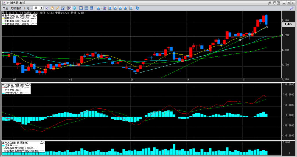 白金のチャートを見ると、引き続き、強そうな状態が続いています。