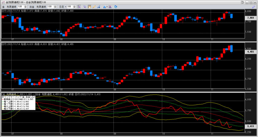 金白金の鞘をボリンジャーバンドで見ていきます。