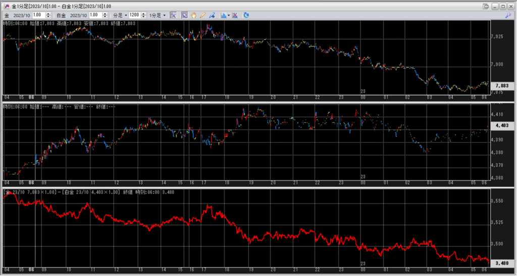 中:大阪取引所 白金 2023年10月限 1分足