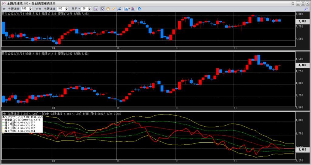 金白金の鞘をボリンジャーバンドで見ていきます。