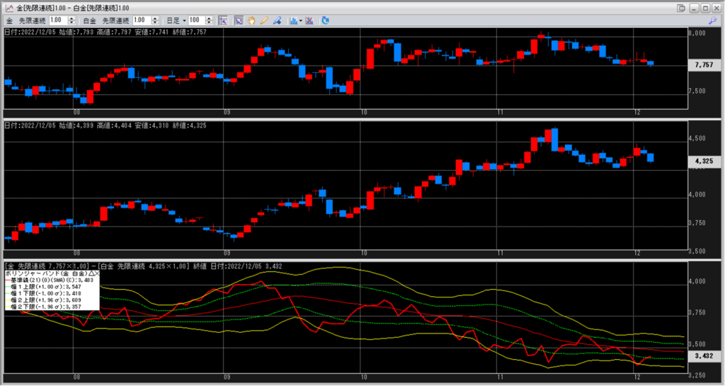 金白金の鞘をボリンジャーバンドで見ていきます。