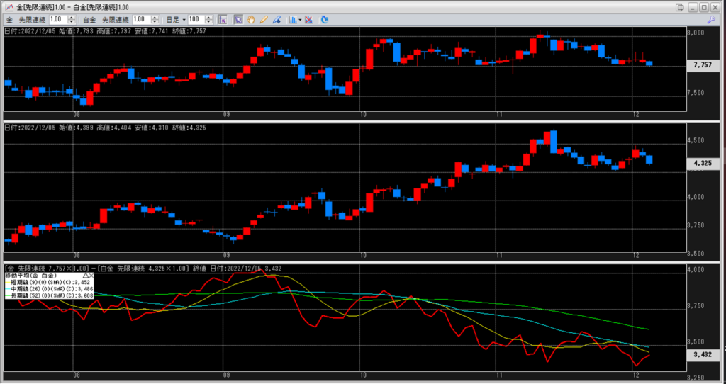 下記に金白金鞘の移動平均線のチャートを貼り付けています。