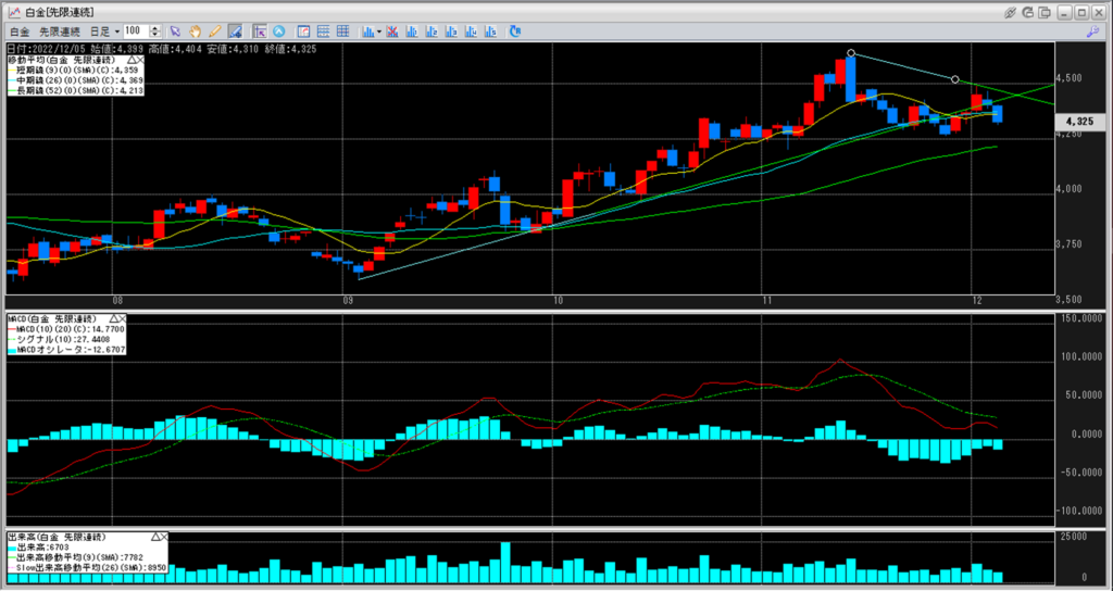 白金のチャートを見ると、少し持ち直しの動きがみられましたが、