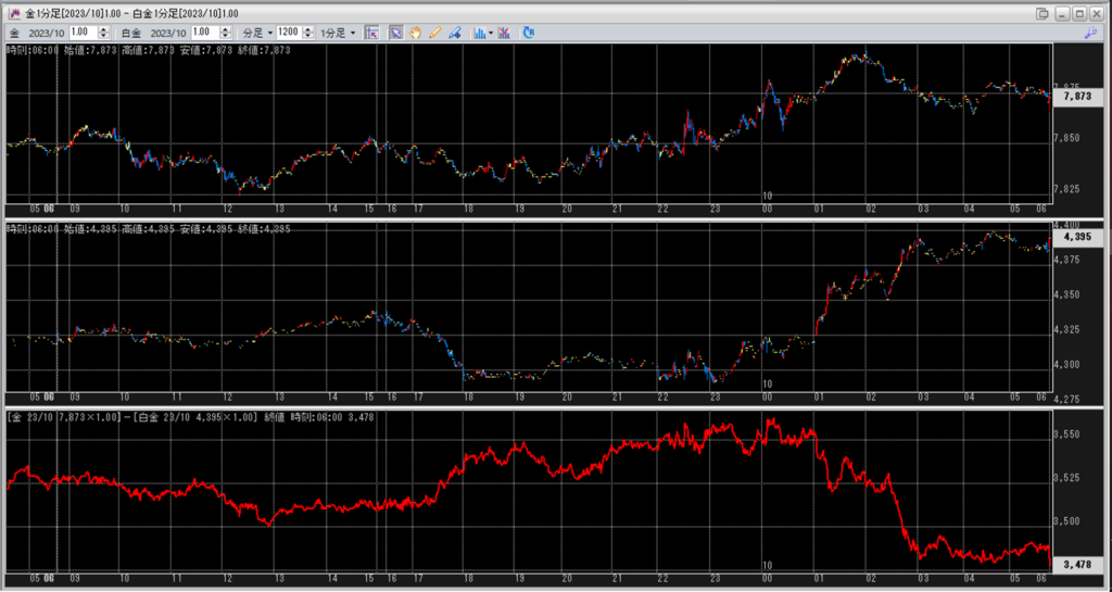中:大阪取引所 白金 2023年10月限 1分足
