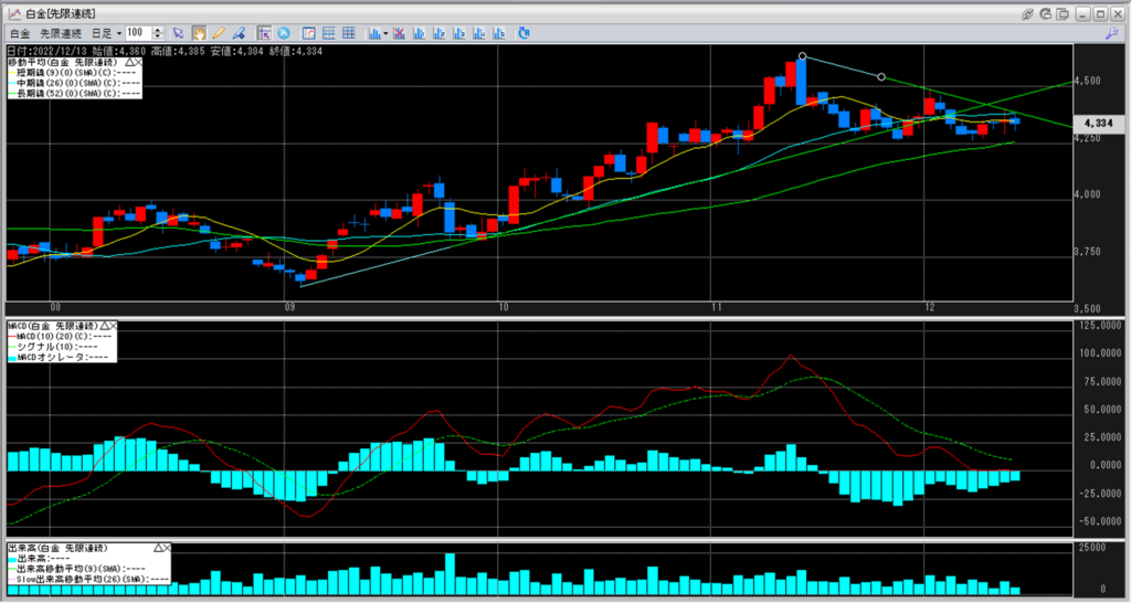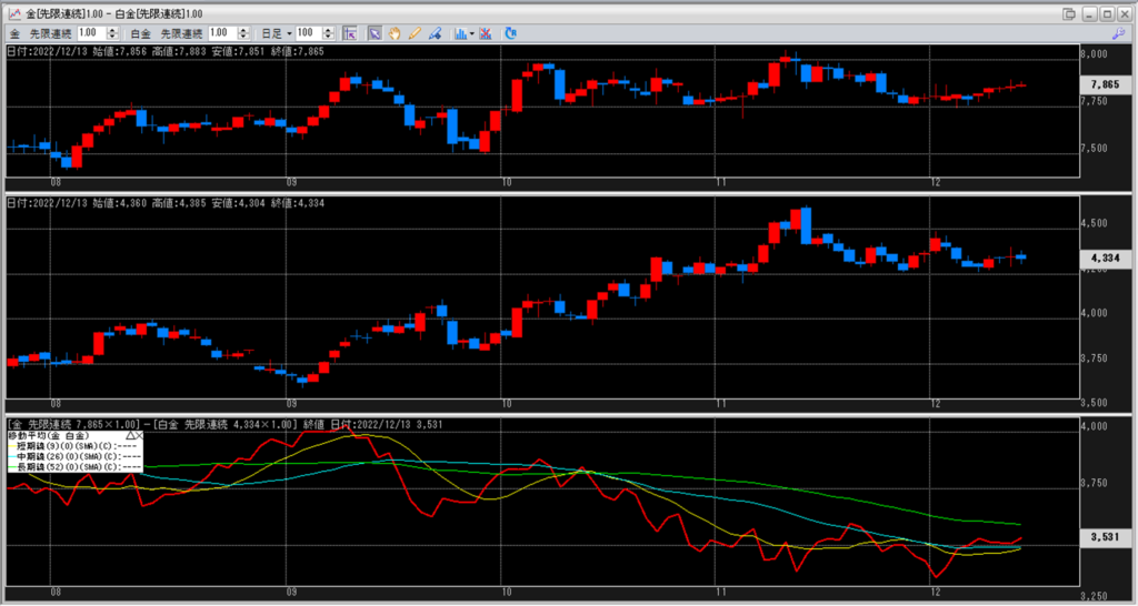 下記に金白金鞘の移動平均線のチャートを貼り付けています。