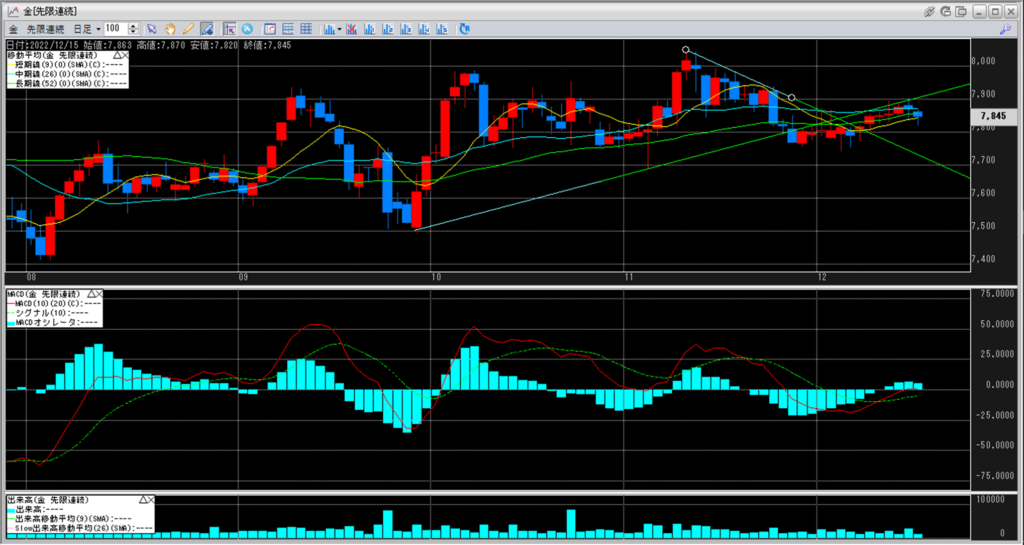 下記に金白金鞘の移動平均線のチャートを貼り付けています。