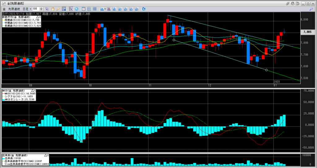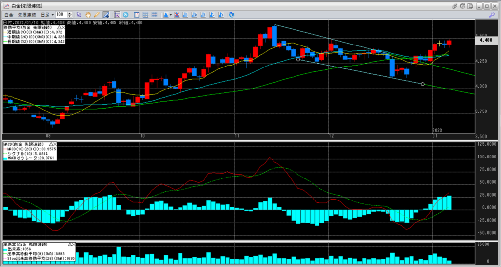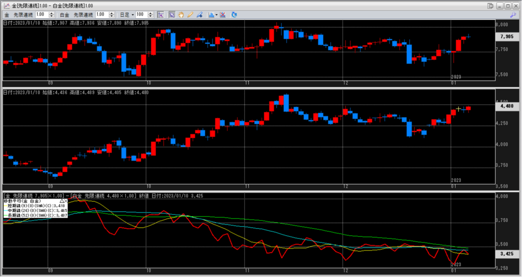 下記に金白金鞘の移動平均線のチャートを貼り付けています。