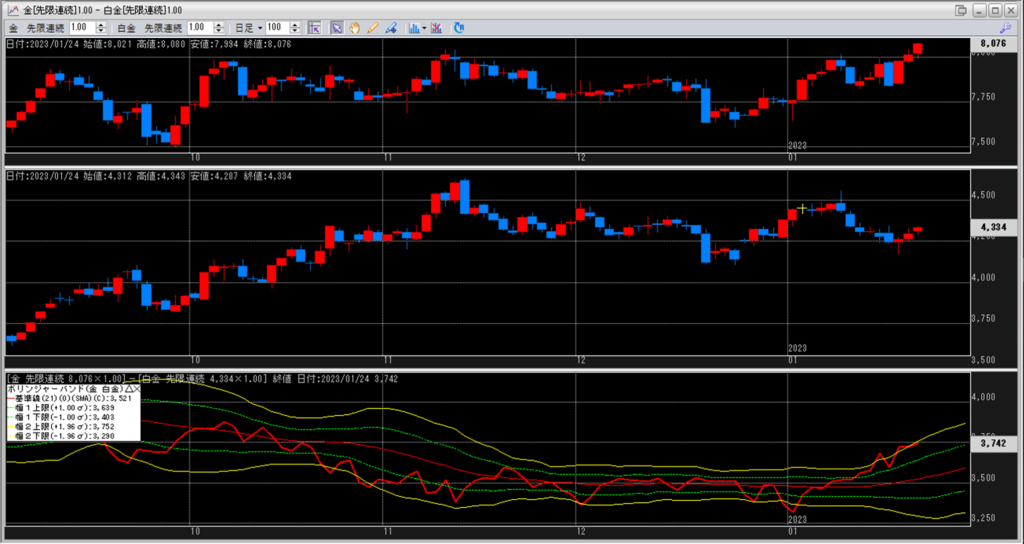 金白金の鞘をボリンジャーバンドで見ていきます。