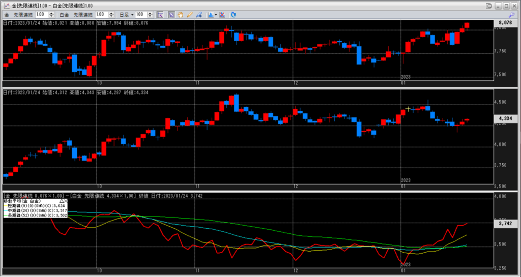 金白金の鞘の移動平均を見ていきます。