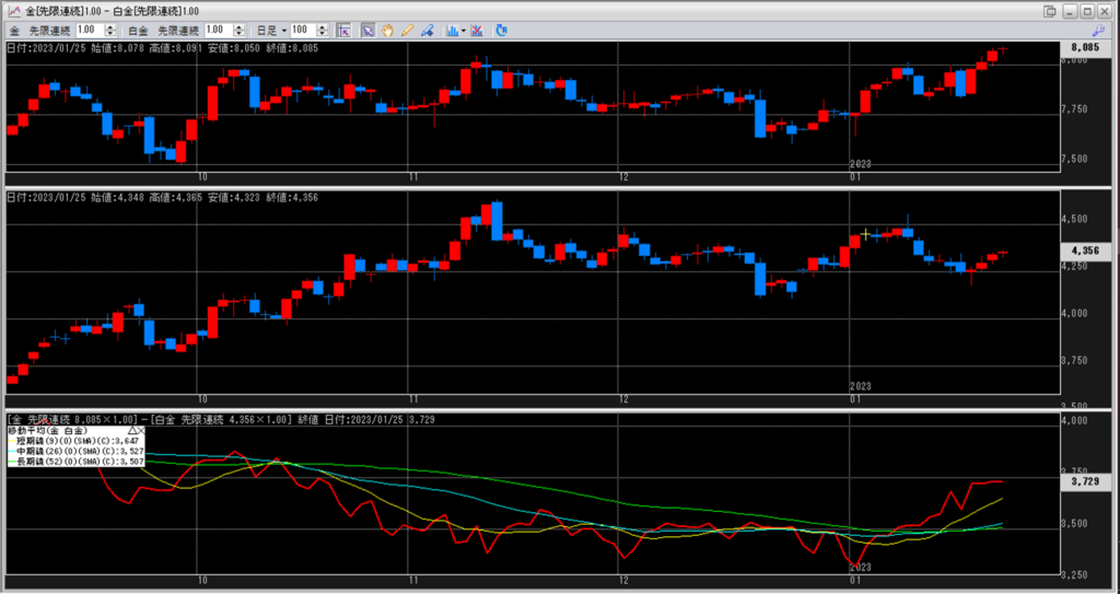 金白金の鞘の移動平均を見ていきます。