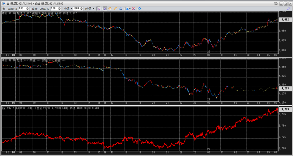 追加で鞘拡大の仕掛金買い1枚-白金売り2枚を建てたタイミングは