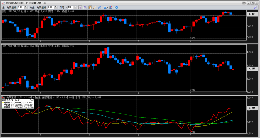 金白金の鞘の移動平均を見ていきます。