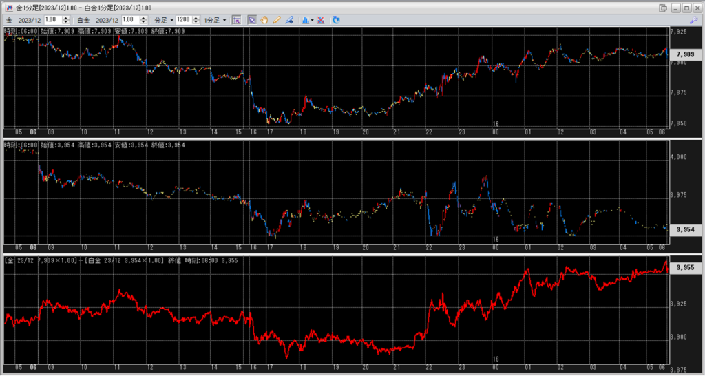 どこかで鞘拡大の仕掛金買い1枚-白金売り2枚を建てていければと考えています。