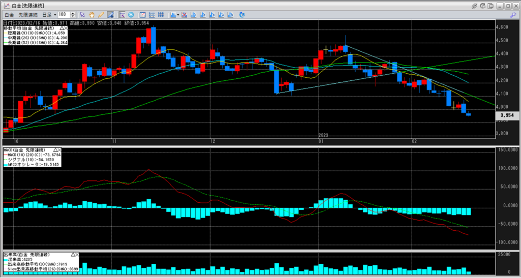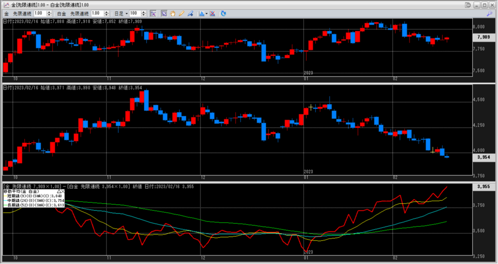 下記に金白金鞘の移動平均線のチャートを貼り付けています。