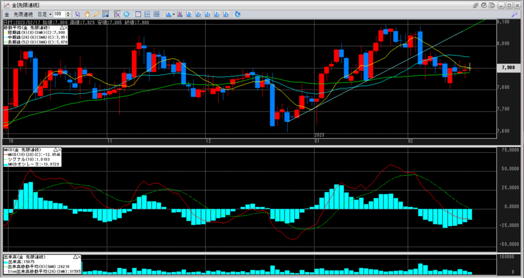 下記に金白金鞘の移動平均線のチャートを貼り付けています。
