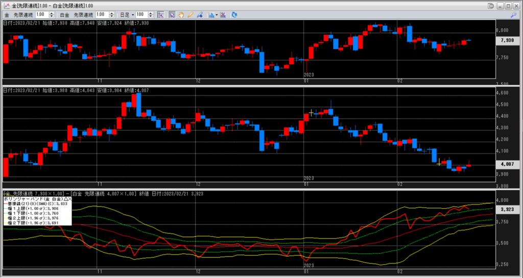 金白金の鞘をボリンジャーバンドで見ていきます。