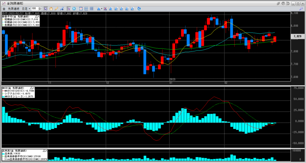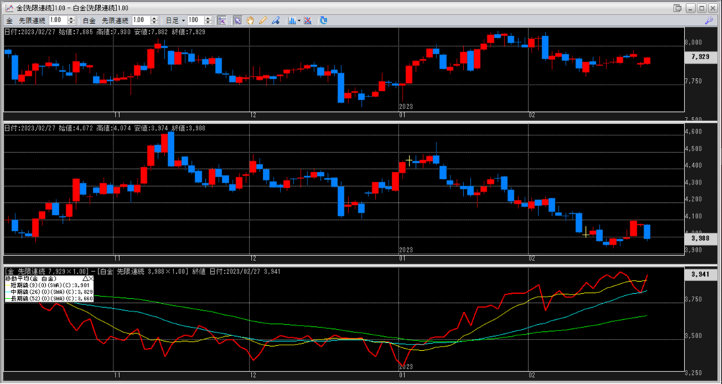 下記に金白金鞘の移動平均線のチャートを貼り付けています。