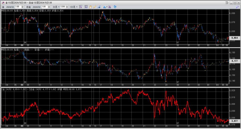 中:大阪取引所 白金 2024年2月限 1分足