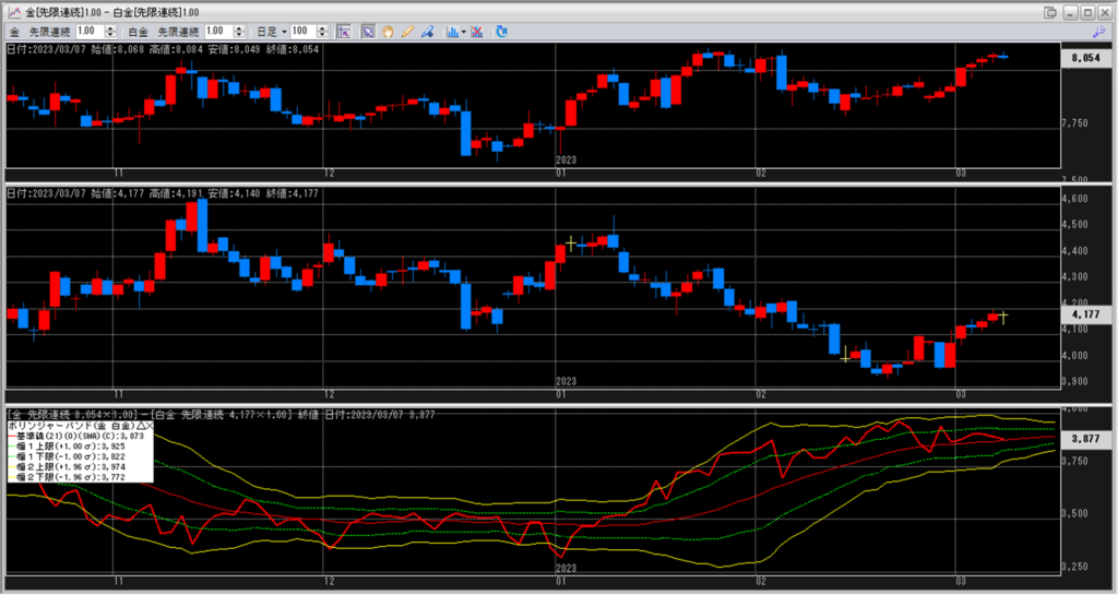 金白金の鞘をボリンジャーバンドで見ていきます。