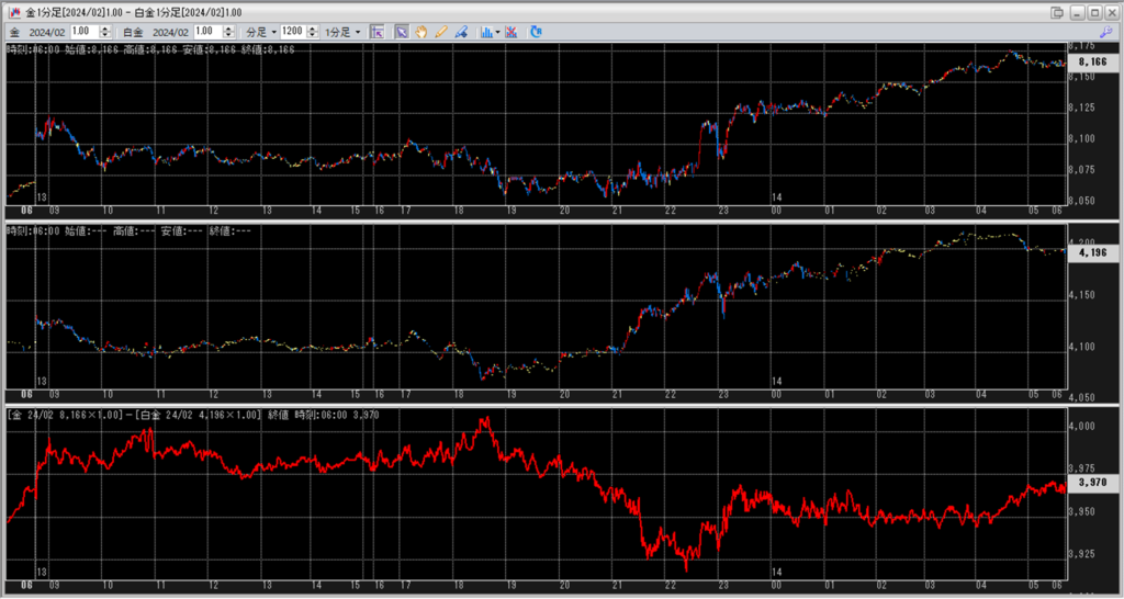 鞘拡大の仕掛金買い1枚-白金売り2枚を仕掛けようかと思いましたが、