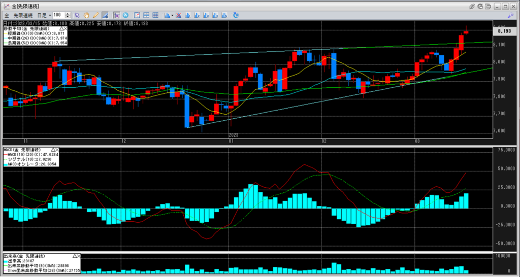 下記に金白金鞘の移動平均線のチャートを貼り付けています。