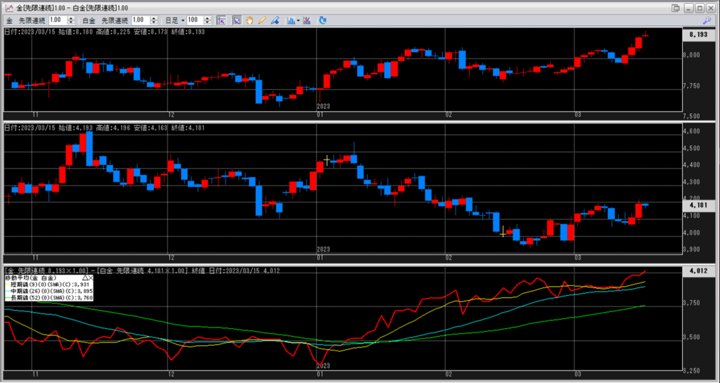 金白金の鞘の移動平均を見ていきます。