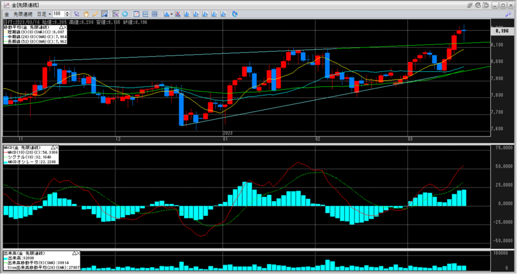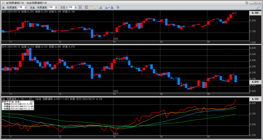 下記に金白金鞘の移動平均線のチャートを貼り付けています。