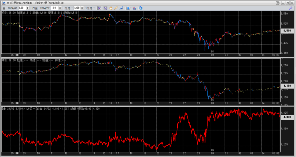 中:大阪取引所 白金 2024年2月限 1分足