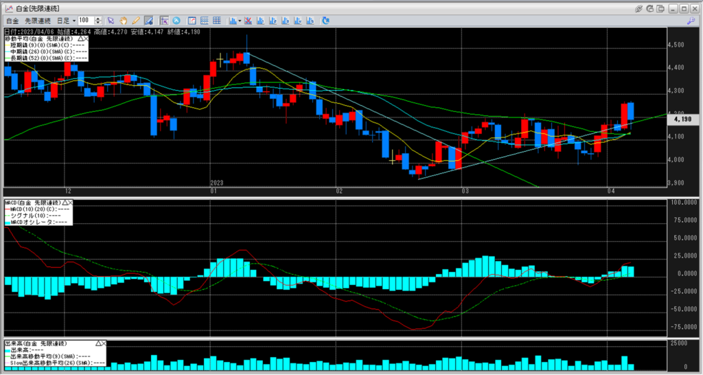 下記に白金のチャートを貼り付けています。