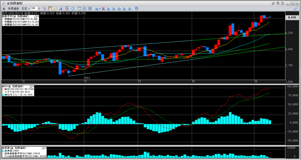 下記に金白金鞘の移動平均線のチャートを貼り付けています。
