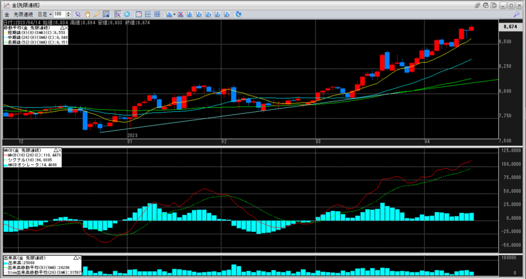 下記に金白金鞘の移動平均線のチャートを貼り付けています。