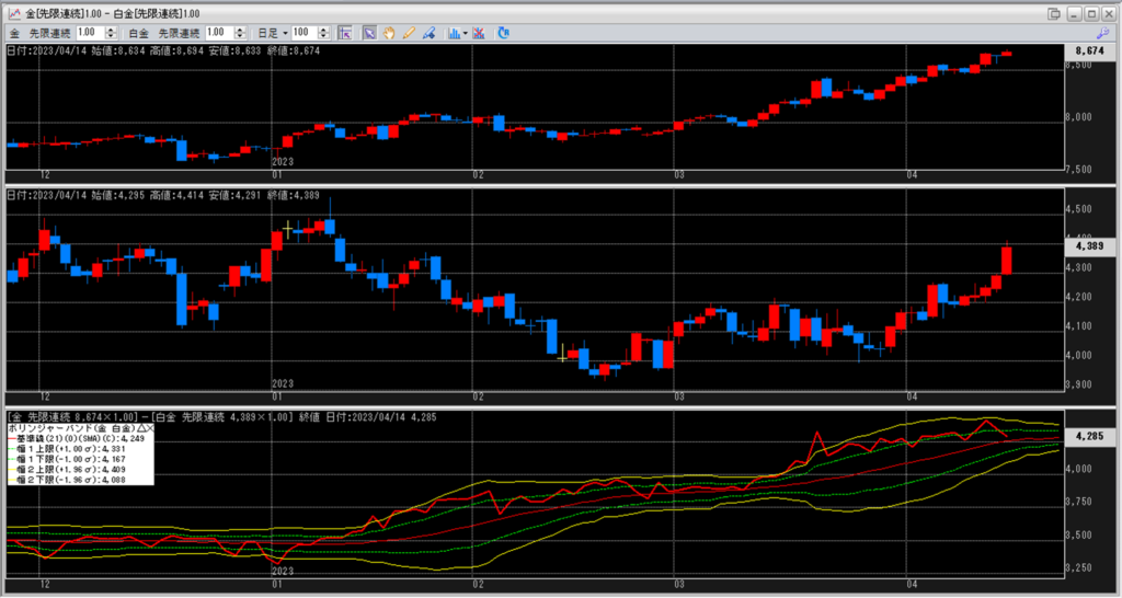 金白金の鞘をボリンジャーバンドで見ていきます。