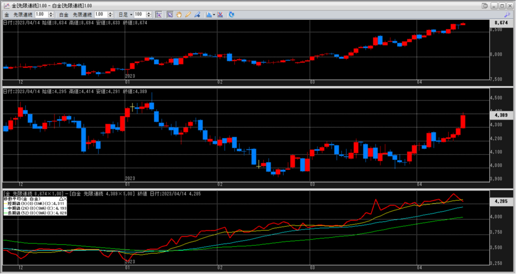金白金の鞘の移動平均を見ていきます。