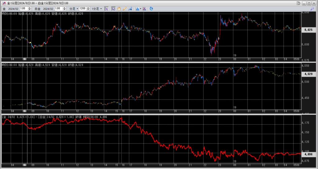 中:大阪取引所 白金 2024年2月限 1分足