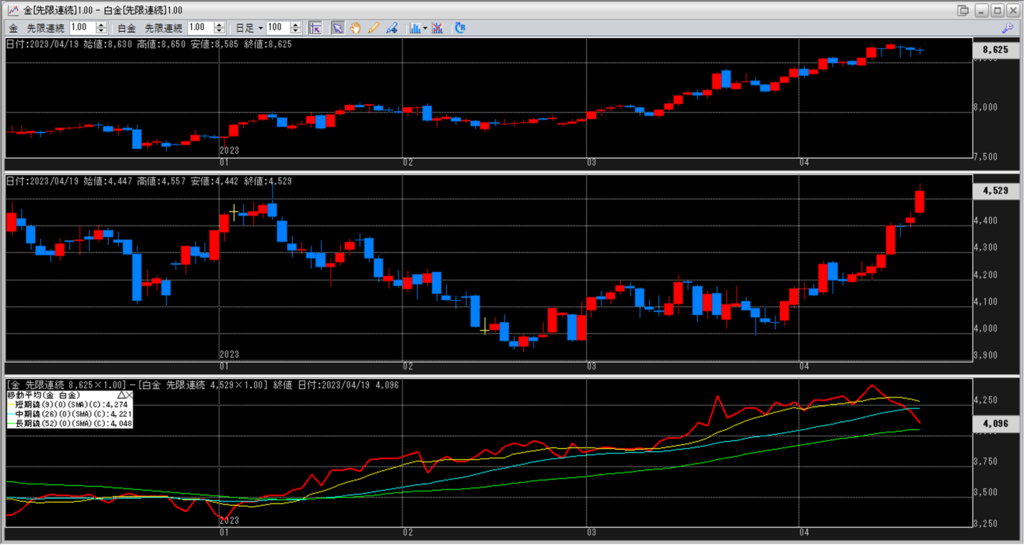 金白金の鞘の移動平均を見ていきます。