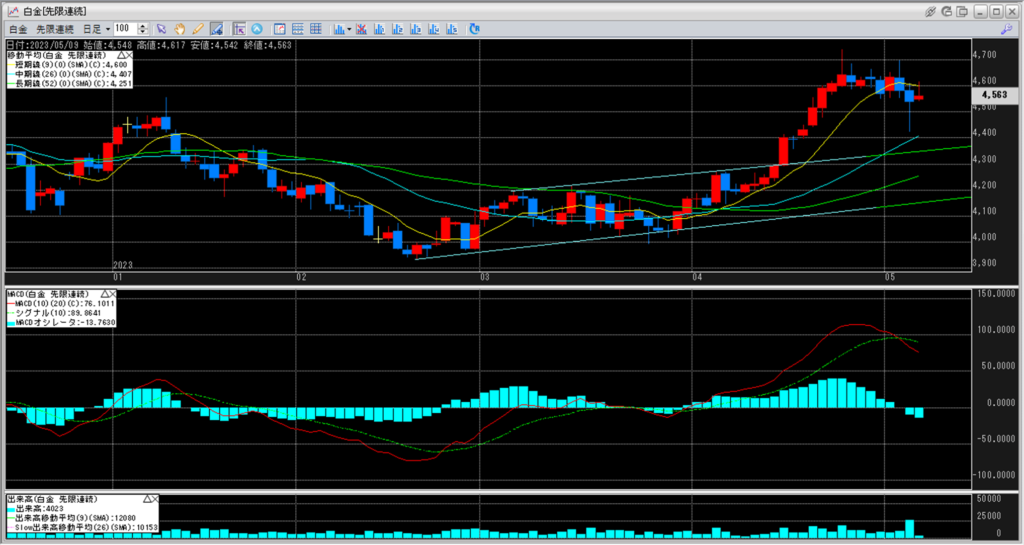 下記に金白金鞘の移動平均線のチャートを貼り付けています。