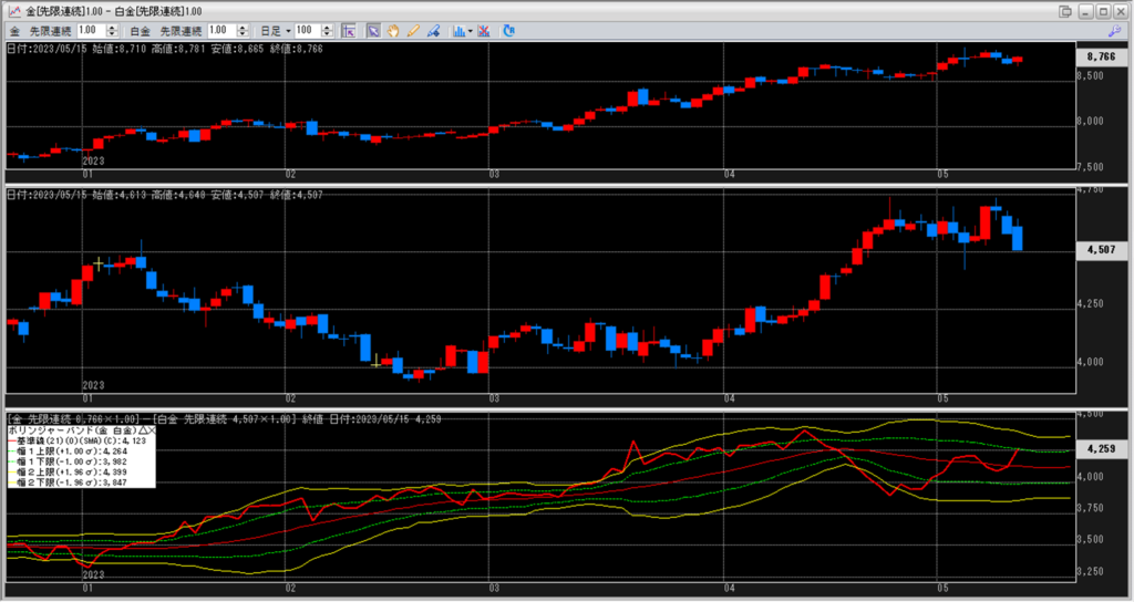 金白金の鞘をボリンジャーバンドで見ていきます。