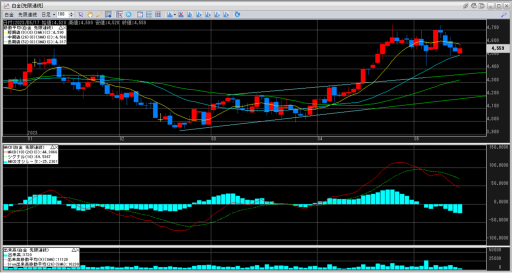 下記に白金のチャートを貼り付けています。
