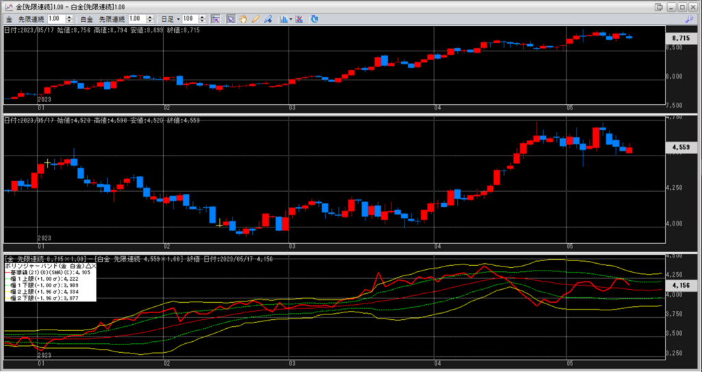 金白金の鞘をボリンジャーバンドで見ていきます。