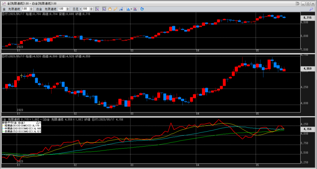 金白金の鞘の移動平均を見ていきます。