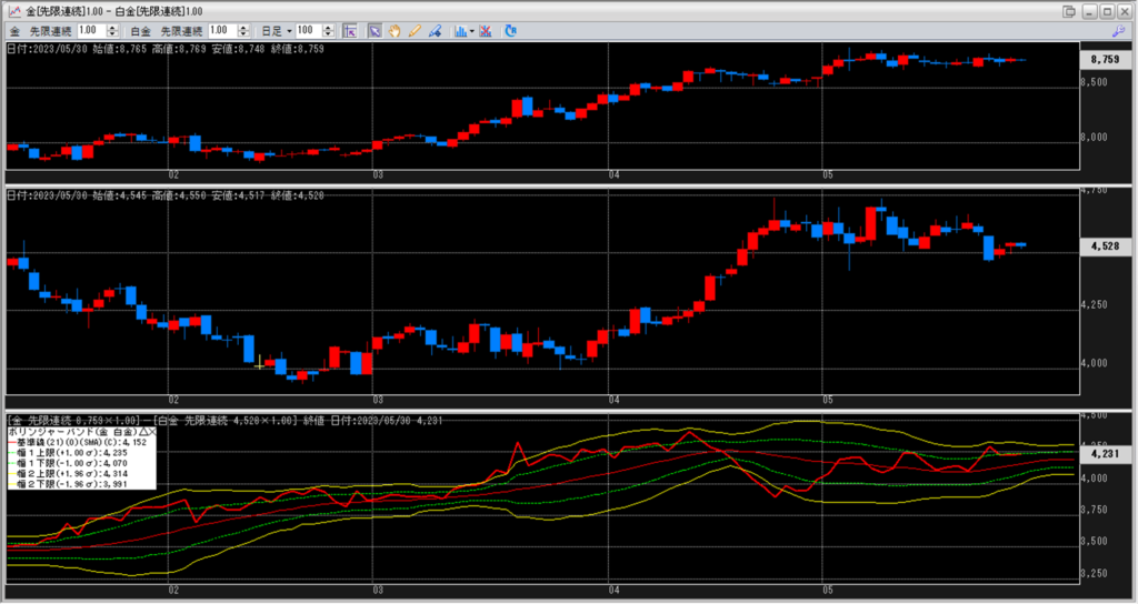 金白金の鞘をボリンジャーバンドで見ていきます。